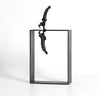 Questa scultura astratta in metallo di 29 cm incarna il minimalismo con sottigliezza e profondità. Rappresentando un rettangolo verticale in cui un uomo sembra camminare, accompagnato dal proprio riflesso, questo pezzo gioca abilmente con le nozioni di movimento e dualità. Il design semplice ma accattivante di questa scultura la rende un complemento ideale per interni moderni e artistici, attirando lo sguardo senza ingombrare lo spazio.