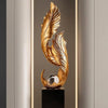 Statua di design con piuma d'oro su base – 68 cm